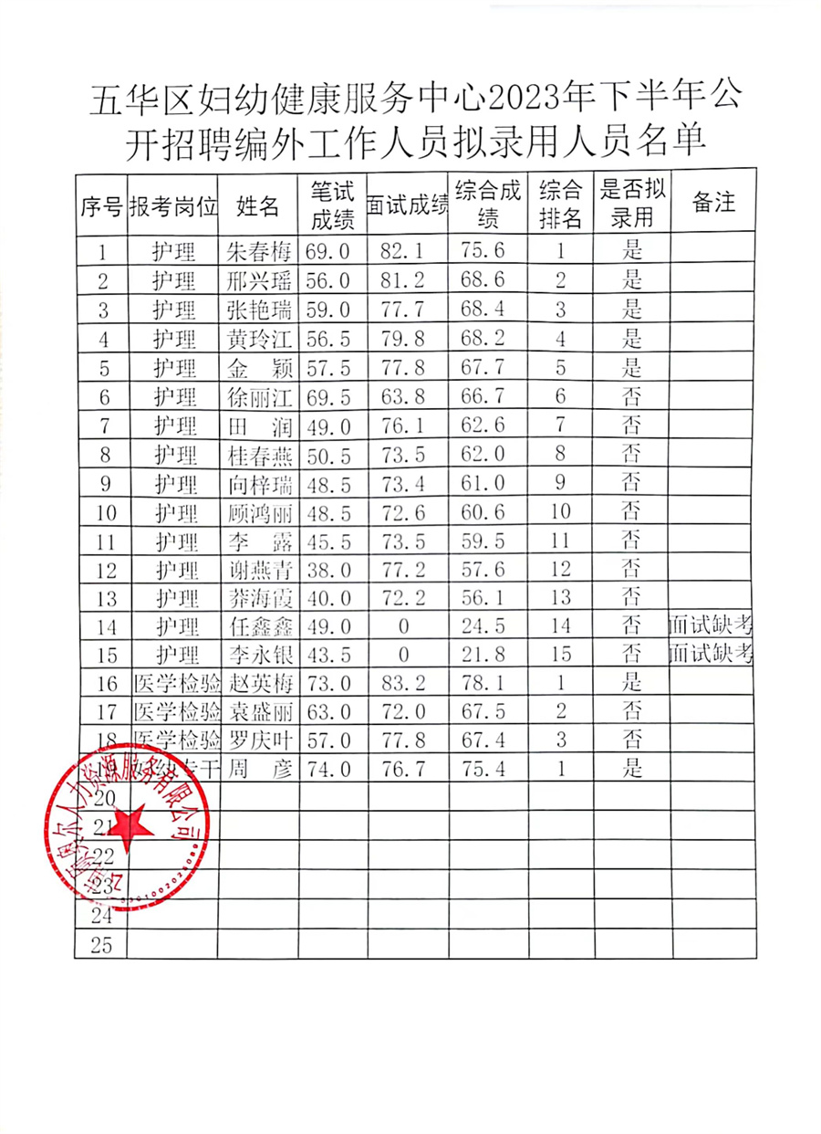 根据《五华区妇幼健康服务中心2023年下半年公开招聘编外工作人员的公告》,现对拟录用人员进行公示。
